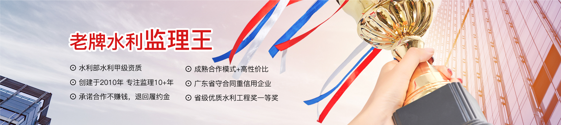廣東中水工程監(jiān)理有限公司成立于2010年7月,是一家工程監(jiān)理綜合性服務(wù)企業(yè)。公司擁有水利部水利甲級、房屋建筑/市政公用甲級等資質(zhì),被列入廣東省政府采購代理機構(gòu)指定企業(yè),多次獲得“廣東省守合同重信用企業(yè)”等榮譽。